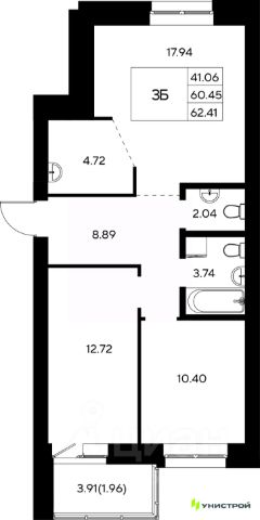 Российская Федерация, Республика Татарстан, Пестречинский муниципальный район, Шигалеевское сельское поселение, жилой комплекс "Усадьба Царево-2", 3 кв.63