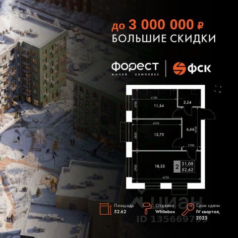 Прямая продажа от застройщика! Корпус 1.1 сдан! Жилой Комплекс комфорт-класса. Продаётся 1-к квартира номер 83 общей площадью 46.9 кв.м. на 4-м этаже 4 этажного здания. Отделка Whitebox. Цена с учётом скидки. Особенности квартиры: - Линейная планировка - максимальная функциональность и удобство. - Увеличенная высота потолков - ощущение простора и легкости. - Второй свет - уникальная атмосфера с открытыми пространствами. - Квартира с антресолью - стильное и необычное решение для вашего дома. Квартира с предчистовой отделкой (White box). Вам не придется заниматься черновыми и трудоёмкими работы, а чистовую отделку и дизайн - сделайте на свой вкус. Информация о комплексе: "Форест" - жилой комплекс комфорт-класса, созданный для тех, кто ищет гармонию с природой, не отказываясь от городского ритма. Расположенный в окружении леса и реки, он воплощает мечту о загородной жизни со всеми удобствами города. Здесь можно проживать самые тёплые моменты с близкими, дышать свежим хвойным воздухом, встречать утро на собственной террасе или проводить вечера с друзьями под открытым небом. Благоустроенная территория, прогулочные дорожки и зоны отдыха создают атмосферу уюта и гармонии. Поблизости - лес и Волга, куда можно выбраться на прогулку в любое время, не дожидаясь выходных. Благодаря вечнозелёным растениям и продуманному озеленению, дворы остаются зелёными круглый год. Транспортная доступность: - 4 мин. пушком до автобусной остановки - 5 мин. на машине до школы Внутренняя инфраструктура: Продуманное пространство для жизни, отдыха и развития. На территории комплекса работает собственный детский сад - современное и безопасное пространство, где дети всегда рядом с родителями. Во дворе установлены игровые комплексы для активных прогулок и развития малышей на свежем воздухе. Жителям доступны кафе и магазины, площадки для прогулок с питомцами, зоны для пикников и барбекю. Для любителей активного образа жизни предусмотрены велодорожки, воркаут-зоны и тропы для хайкинга, а в шаговой доступности находятся планетарий и глэмпинг. Просторный двор без машин и закрытая территория с системой контроля доступа обеспечивают высокий уровень безопасности и приватности. Здесь можно по-настоящему расслабиться и чувствовать себя дома - в окружении природы, комфорта и заботы о каждом дне.