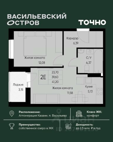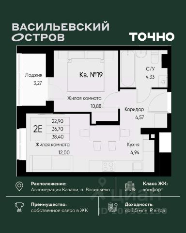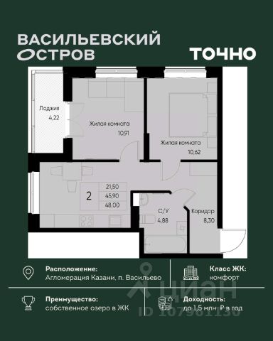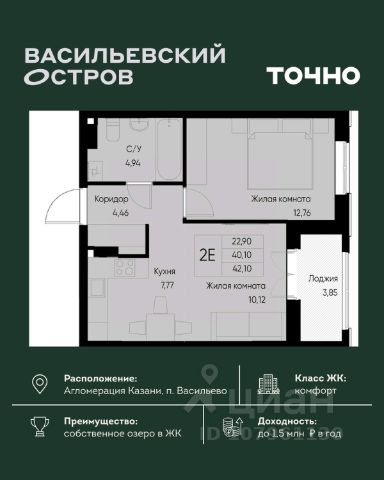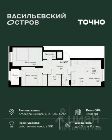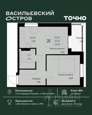 ЖК "Васильевский остров" — масштабный проект ТОЧНО в Казанской агломерации. Просторная территория 88 Га спроектирована для комфортной жизни: озеро с набережной и пляжем, каток, зелёные маршруты. В проекте комплекса — школа на 1 224 места, 2 детских сада на 680 мест, детская и взрослая поликлиники, фитнес-центр с бассейном, термальный комплекс, фермерский рынок, магазины, кафе и рестораны.