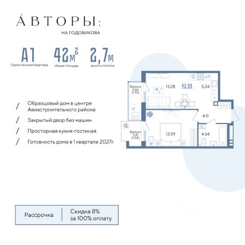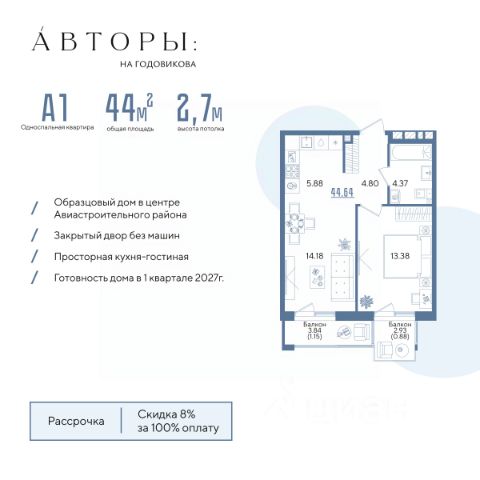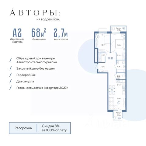 Вы можете приобрести эту квартиру в ипотеку с первоначальным взносом от 20% и со ставкой от 10% для всех, а не только по семейной программе. Подробнее - звоните! Продается 3-к квартира 24 в образцовом доме "Авторы на Годовикова" в центре Авиастроительного района. Квартира на 5 этаже площадью 71,73 м², кухней-гостиной и высотой потолков 2,7 м. Квартира сдается в предчистовой отделке со стяжкой полов, предоставляя полную свободу для ваших предпочтений в дизайне. Срок сдачи дома — 1-й квартал 2027 года. Возможно приобретение со скидкой 8% при полной оплате(акция действительная до 31.07.2026г.), в рассрочку с первым взносом 30%, а также оформление стандартной ипотеки по интересным условиям. Образцовый дом "Авторы на Годовикова" расположен в тихой зоне, удаленной от активной дороги — на второй линии от улицы Максимова. Соседство с невысокими частными домами открывает превосходный вид из квартиры. Для прогулок на свежем воздухе в шаговой доступности Караваевский парк и парк "Крылья Советов". В соответствии с современными стандартами комфорт-класса "Авторы" предлагают особые решения для вашего комфорта: • Современная архитектура. • Закрытый двор без машин. • Дизайнерские холлы с зонами ожидания и детской комнатой. • Подземный паркинг. • Зона для хвостатых. Двор в концепции траектории полета создает единую линию движения. На территории дома есть многофункциональная зона для йоги и настольных игр, детская зона для комфортных прогулок юных жителей, многофункциональная спортивная площадка со скалолазанием и площадка для выгула собак. Обильное озеленение из 25 видов растений и несколько игровых зон для юных жителей разных возратов: для детей до 3-х лет — песочница, горка и качели; для детей от 4 до 14 лет — большой игровой комплекс, включающий горки, качели, карусели, переговорные трубы и мягкую геопластику, в которой прячутся тоннели. Компания "Авторы" — девелопер на рынке высококлассной недвижимости Казани. Как самостоятельный застройщик компания работает с 2022 года, а в начале 2024 года успешно сдали свой первый проект ЖК "Дом у озера", где 96% квартир были приняты дольщиками с первого раза и без критичных замечаний. Компания входит в ТОП-5 застройщиков РТ по потребительским качествам ЕРЗ. Сейчас компания ведет строительство проектов на ул. Большая, ул. Петербургская, ул. Годовикова и ул. Астрономическая