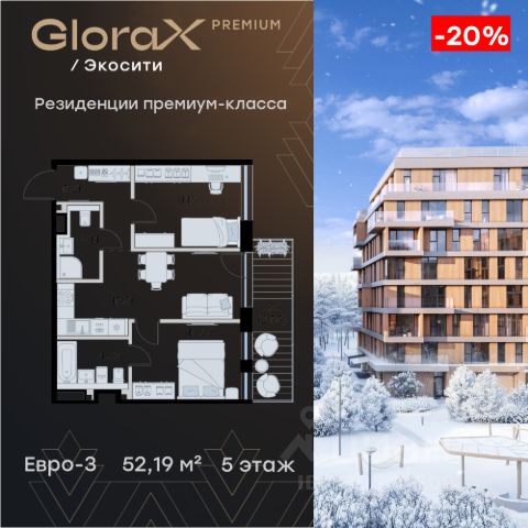 Продается 2-комн. квартира на 5-м этаже в строящемся проекте премиум-класса GloraX Premium Экосити. Общая площадь лота составляет 52,19 кв. м, из которых 21,75 кв. м отведено под жилую и 15,51 кв. м под кухонную зону. Номер квартиры - 26 GloraX Premium Экосити это роскошь, вдохновленная природой. Преимущества, которые изменят вашу жизнь: • Собственная премиальная инфраструктура: Всё для комфорта и досуга, не выходя за территорию комплекса • Безопасность 24/7: Закрытая территория, видеонаблюдение, система "Умный дом" • Безбарьерная среда: Забота о каждом жителе, независимо от возраста и физических возможностей. • Изысканные дизайнерские холлы: Эстетика и комфорт с первых шагов в вашем доме. • Удобные колясочные в каждой секции: Больше пространства в вашей резиденции. • Квартиры в черновой отделке: Индивидуальные пространства для комфортной жизни. • Вдохновляющее благоустройство: Вдохнолвленные хвойным окружением: пешеходные и спортивные маршруты, детские площадки для разных возрастов, площадки для отдыха взрослых и зеленые кабинеты, озеро с плейхабом, теннисная площадка, площадка для мини-гольфа и многое другое всё для активной и насыщенной жизни. • Забота о будущем: Современные детский сад и школа с центром допольнительного образования рядом с кварталом. GloraX Premium Экосити это масштабный проект премиум-класса, созданный для тех, кто ценит комфорт, безопасность и качество жизни. Расположенный в Аракчино Кировского района, он гармонично сочетает в себе близость к природе и развитую инфраструктуру. Здесь каждый элемент создан для вашего удобства: от функциональных планировок до благоустроенной территории. GloraX Premium Экосити это пространство, где вы сможете наслаждаться каждым днем, зная, что сделали правильный выбор. GloraX Premium Экосити - это роскошь, вдохновленная природой. Цена указана при 100% оплате или стандартной ипотеке. Узнайте подробности в Отделе продаж.