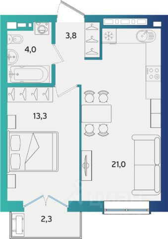 Кухня-гостиная оптимальной площади Ванная комната и дополнительный санузел для комфорта семьи Просторная прихожая с возможностью установки шкафа Эргономичная спальня и детская правильной формы Высота потолка 2,73 м Улучшенная предчистовая отделка