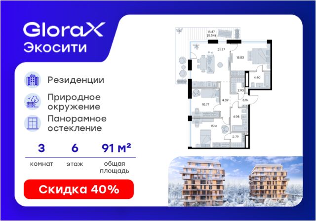 Продается 2-комн. квартира на 6-м этаже в строящемся проекте GloraX Экосити. Общая площадь лота составляет 49,64 кв. м, из которых 21,75 кв. м отведено под жилую и 15,51 кв. м под кухонную зону. Номер квартиры - 194 Преимущества резиденции в квартале "Резиденции": - перегородки межкомнатные перегородки в 1 кирпич, в С/У в 2 кирпича с заведением гидроизоляции на 20 см - потолки - без отделки - полы в помещениях: жилые комнаты, гардеробная, коридор, прихожая, кухня - шумоизоляция пола, стяжка -полы во влажных помещениях - гидроизоляция, стяжка -водоснабжение -ввод ХВС, ГВС, канализации в ближайший СУ/в квартиру - электрический щит - временный, при входе в квартиру - отопление - горизонтальная разводка в полу с установкой - входная дверь - металлическая входная дверь с декоративной накладкой - На территории Урбан-квартала предусмотрено строительство детского сада на 360 мест, школы на 1501 место, детский развивающий центр на 2000 мест. - Рядом с с кварталом Резиденции запланировано строительство детского сада на 360 мест, школы с детским развивающим центром на 1501 место - На первых этажах домов Урбан-квартала запроектированы коммерческие помещения - предусмотрены места для супермаркетов, бытовых услуг, кафе. - Собственный комьюнити-центр для жителей Урбан-квартала - Клуб Резидентов для жителей квартала Резиденции - бульвар "Река между камней" с плейхабом для детей, амфитеатром, спортивными зонами, аллеей достижений. Всем посетителям будет доступен иммерсивный маршрут и AR-игры. - Тайная тропа вдоль которой расположатся зоны тихого отдыха, йоги и медитаций - 2 смотровые площадки - Снейк-ран - Круговой спортивный маршрут - Специальные зоны для выгула собак - В Урбан-квартале предусмотрено строительство 2 многоэтажных паркингов на 300 и 360 машиномест. Всем жителям проекта доступен и привычный плоскостной паркинг вокруг территории проекта с возможностью в приложении дома получить информацию о наличии парковочных мест. - В квартале Резиденции предусмотрен подземный паркинг на 260 машиномест GloraX Экосити — это совершенство города в первозданной природе. Наполненный возможностями квартал, в котором вы не выбираете между городом или природой, семьей или работой, отдыхом или спортом, — вы берете всё сразу. Каждая семья, каким бы составом она ни жила, найдет для себя идеальное пространство. Планировочные решения разнообразны, также как и возможности отделки от черновой до полностью с ремонтом. Здесь запроектированы квартиры с просторной кухней-гостиной, чтобы семья могла комфортно проводить время вместе. Квартиры сдаются с современной качественной отделкой, что позволяет после сдачи дома сразу начать жить, избежав долгих самостоятельных ремонтов. Цветовые решения и стиль отделки можно выбрать при покупке квартиры. Резиденции сдаются в черновой отделке, вы могли реализовать ваши самые смелые дизайнерские решения. Каждая резиденция это база, на которой можно выстроить свой личный стиль. Цена указана при 100% оплате или стандартной ипотеке. Уз
