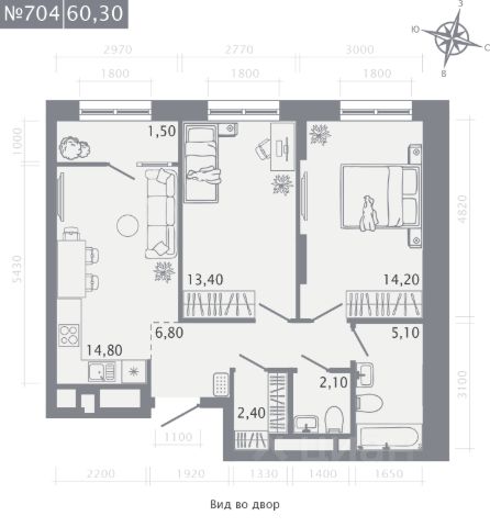 Продуманная 2-комнатная квартира классического формата с отдельной кухней. Площадь кухни позволяет организовать зону гостиной, где можно наслаждаться ужинами с близкими за большим столом.