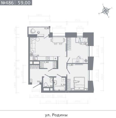 Две отдельные комнаты позволят предусмотреть место для всех домочадцев. В прихожей достаточно места для шкафа-купе, чтобы вам было удобно хранить свои вещи.