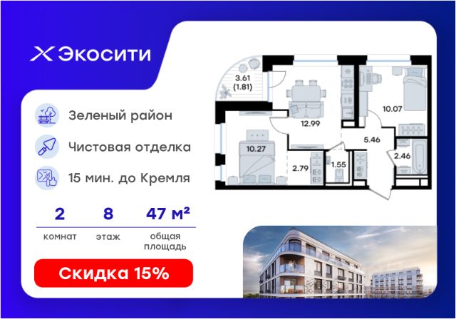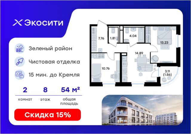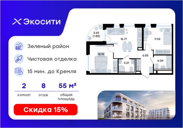 Продается 1-комн. квартира на 8-м этаже в строящемся проекте Экосити. Общая площадь лота составляет 33,86 кв. м, из которых 10,55 кв. м отведено под жилую и 14,89 кв. м под кухонную зону. Номер квартиры - 403 Преимущества квартиры в Урбан-квартале: • Квартира с полностью чистовой отделкой. В комнатах и коридоре: - натяжной потолок, - стены оклеены обоями под покраску, - полы: ламинат, плинтусы и напольная плитки - установлены межкомнатные двери и подоконники. В санузлах: - на стенах - керамогранитная плитка и/или окраска водостойкой краской - на полу - керамогранитная плитка; - натяжной потолок - сантехника: ванна и экран под ванну/душевой поддон, унитаз, раковины и смесители, монтаж водопровода и канализации - Предусмотрен расширенный пакет системы Умный Дом: бесключевой доступ в подъезд, видеодомофон с функцией Face ID, видеонаблюдение, автоматизированный сбор и передача показаний счётчиков; - На территории Урбан-квартала предусмотрено строительство детского сада на 360 мест, школы на 1501 место, детский развивающий центр на 2000 мест. - Рядом с с кварталом Резиденции запланировано строительство детского сада на 360 мест, школы с детским развивающим центром на 1501 место - На первых этажах домов Урбан-квартала запроектированы коммерческие помещения - предусмотрены места для супермаркетов, бытовых услуг, кафе. - Собственный комьюнити-центр для жителей Урбан-квартала - Клуб Резидентов для жителей квартала Резиденции - бульвар "Река между камней" с плейхабом для детей, амфитеатром, спортивными зонами, аллеей достижений. Всем посетителям будет доступен иммерсивный маршрут и AR-игры. - Тайная тропа вдоль которой расположатся зоны тихого отдыха, йоги и медитаций - 2 смотровые площадки - Снейк-ран - Круговой спортивный маршрут - Специальные зоны для выгула собак - В Урбан-квартале предусмотрено строительство 2 многоэтажных паркингов на 300 и 360 машиномест. Всем жителям проекта доступен и привычный плоскостной паркинг вокруг территории проекта с возможностью в приложении дома получить информацию о наличии парковочных мест. - В квартале Резиденции предусмотрен подземный паркинг на 260 машиномест Экосити — это совершенство города в первозданной природе. Наполненный возможностями квартал, в котором вы не выбираете между городом или природой, семьей или работой, отдыхом или спортом, — вы берете всё сразу. Каждая семья, каким бы составом она ни жила, найдет для себя идеальное пространство. Планировочные решения разнообразны, также как и возможности отделки от черновой до полностью с ремонтом. Здесь запроектированы квартиры с просторной кухней-гостиной, чтобы семья могла комфортно проводить время вместе. Квартиры сдаются с современной качественной отделкой, что позволяет после сдачи дома сразу начать жить, избежав долгих самостоятельных ремонтов. Цветовые решения и стиль отделки можно выбрать при покупке квартиры. Резиденции сдаются в черновой отделке, вы могли реализовать ваши самые смелые дизайнерские решения. Каждая резиденция это баз