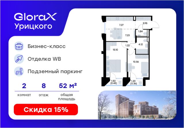 Продается 1-комн. квартира на 8-м этаже в квартале бизнес-класса GloraX Урицкого. Общая площадь лота составляет 33,47 кв. м, из которых 10,82 кв. м отведено под жилую и 12,65 кв. м под кухонную зону. Номер квартиры - 506 GloraX Урицкого это идеальное сочетание динамики мегаполиса и камерности района, где каждое утро начинается легко, а каждый вечер наполнен ощущением дома Преимущества квартиры: однокомнатная квартира; высокий этаж; остекленная лоджия; вид на город. Преимущества, которые изменят вашу жизнь: • Собственная инфраструктура: Всё для комфорта и досуга, не выходя за территорию проекта • Безопасность 24/7: Закрытая территория, видеонаблюдение, система "Умный дом" • Безбарьерная среда: Забота о каждом жителе, независимо от возраста • Футуристичные лобби: Эстетика и комфорт с первых шагов в вашем доме. • Колясочные в каждой секции: Больше пространства в ваших квартирах • Квартиры в отделке White Box: Готовый холст для реализации дизайнерских идей. • Благоустройство в стиле лесопарка: эко-пространство, где природа становится частью повседневной жизни. GloraX Урицкого это проект бизнес-класса для тех, кто живёт в ритме большого города, но ждёт безмятежности у себя дома. Здесь всё важное происходит рядом с вами: работа, встречи, спортивные и культурные активности, прогулки, образование и обучение. Здесь вы ощутите, что вы наконец-то дома — в доме, которого давно ждали. Стоимость действительна при 100% оплате или стандартной ипотеке.