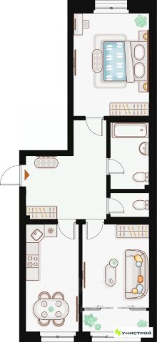 Планировка - распашонка, комнаты легко проветриваются и наличие солнечного света в любое время суток