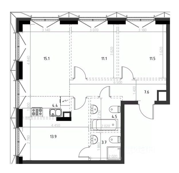 • ✅ Минимальная площадь: 17,3 м²