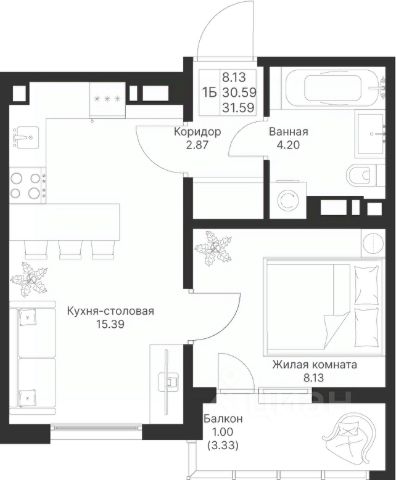• ✅ Минимальная площадь: 25,8 м²