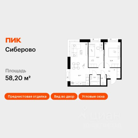Продаётся 2-комн. квартира площадью 58,2 кв.м на 9 этаже 12 этажного дома (Корпус 3, Секция 2) проекта ПИК Сиберово. Светлый просторный подъезд на уровне земли, функциональная планировка, большие окна, предчистовая отделка. "Сиберово" - жилой квартал на улице Журналистов с парками в каждом дворе, школой и двумя детскими садами. До центра Казани - 15 минут пути на машине. Переменная высота домов от 7 до 26 этажей создаёт ощущение простора, а солнечному свету позволяет беспрепятственно проникать во дворы и квартиры. С верхних этажей откроется панорамный вид на реку Казанку, "Ак Барс Арену" и центр семьи "Казан". Жилой квартал отметили на форуме "Казаныш", где награждают лучшие архитектурные проекты Казани. В 2023 году проект оказался в двух номинациях: "Лучшее благоустройство территорий" и "Лучшая архитектурно-градостроительная подсветка". В "Сиберово" будет всё необходимое для комфортной жизни: на первых этажах разместятся магазины, кафе и полезные сервисы. Внутри жилого квартала запланировано строительство школы и двух детских садов. Для удобства жителей будут подземные паркинги в каждом доме, четыре наземных многоуровневых паркинга, индивидуальные кладовые и колясочные. В каждом дворе будет парк - тихое приватное пространство для жителей, где можно расслабиться после рабочего дня. Здесь красиво и уютно в любое время года. Через весь квартал протянется широкий пешеходный бульвар с велодорожками, велопарковками, зонами для отдыха, детскими и спортивными площадками. Входы в подъезды в "Сиберово" сделаны на уровне земли: по территории квартала удобно перемещаться и пешком, и на самокате, и с коляской. Первые этажи просторные и светлые: панорамное остекление пропускает много естественного света, а высота потолков доходит до пяти метров. Все квартиры сдаются в предчистовой отделке: с ровными белыми стенами, готовой гидроизоляцией, стяжкой полов, разводкой систем отопления, с окнами с надёжным пластиковым профилем. Вам останется только выбрать цвета и материалы для косметического ремонта, чтобы оформить квартиру на свой вкус. Вокруг "Сиберово" развитый район города: рядом детские сады, школы, колледж, поликлиники и торговые центры. До центра отсюда всего 15 минут на машине. Артикул 1025293 (Застройщик ООО "СЗ МТ ДЕВЕЛОПМЕНТ")