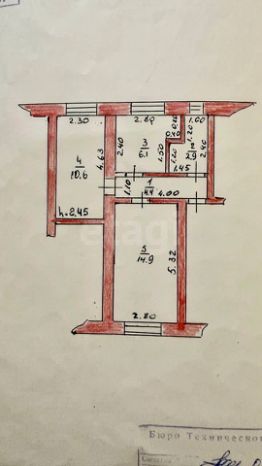 Планировка: изолированные комнаты площадью 10,6 и 14,9 кв.м