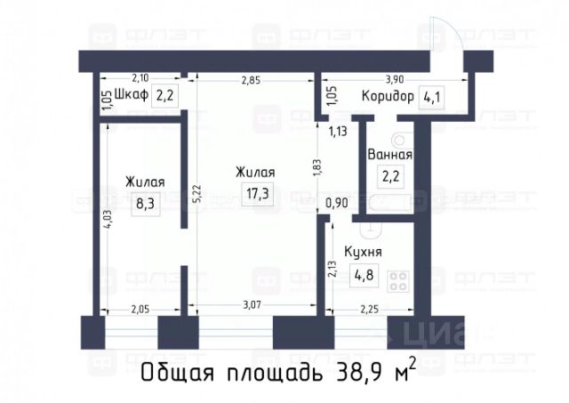 Двухкомнатная квартира в Московском районе г. Казани, ул. Сабан, 1