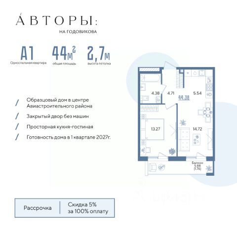 Вы можете приобрести эту квартиру в ипотеку со ставкой от 6% (семейная ипотека). Новоселье уже в этом году! Подробнее - звоните! Продается 3-к квартира 96 в образцовом доме "Авторы на Годовикова" в центре Авиастроительного района. Квартира на 2 этаже площадью 82,14 м², кухней-гостиной и высотой потолков 2,7 м. Квартира сдается в предчистовой отделке со стяжкой полов, предоставляя полную свободу для ваших предпочтений в дизайне. Срок сдачи дома — 1-й квартал 2027 года. Возможно приобретение со скидкой 5% при полной оплате, в рассрочку с первым взносом 30%, а также оформление стандартной ипотеки по интересным условиям. Образцовый дом "Авторы на Годовикова" расположен в тихой зоне, удаленной от активной дороги — на второй линии от улицы Максимова. Соседство с невысокими частными домами открывает превосходный вид из квартиры. Для прогулок на свежем воздухе в шаговой доступности Караваевский парк и парк "Крылья Советов". В соответствии с современными стандартами комфорт-класса "Авторы" предлагают особые решения для вашего комфорта: • Современная архитектура. • Закрытый двор без машин. • Дизайнерские холлы с зонами ожидания и детской комнатой. • Подземный паркинг. • Зона для хвостатых. Двор в концепции траектории полета создает единую линию движения. На территории дома есть многофункциональная зона для йоги и настольных игр, детская зона для комфортных прогулок юных жителей, многофункциональная спортивная площадка со скалолазанием и площадка для выгула собак. Обильное озеленение из 25 видов растений и несколько игровых зон для юных жителей разных возратов: для детей до 3-х лет — песочница, горка и качели; для детей от 4 до 14 лет — большой игровой комплекс, включающий горки, качели, карусели, переговорные трубы и мягкую геопластику, в которой прячутся тоннели. Компания "Авторы" — девелопер на рынке высококлассной недвижимости Казани. Как самостоятельный застройщик компания работает с 2022 года, а в начале 2024 года успешно сдали свой первый проект ЖК "Дом у озера", где 96% квартир были приняты дольщиками с первого раза и без критичных замечаний. Компания входит в ТОП-5 застройщиков РТ по потребительским качествам ЕРЗ. Сейчас компания ведет строительство проектов на ул. Большая, ул. Петербургская, ул. Годовикова и ул. Астрономическая