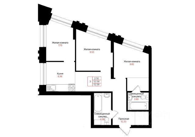 Евро-двухкомнатная: спальня 10,2 м2 и большая кухня-гостиная 19,8 м2 с красивыми видами из окна, в коридоре есть вместительная ниша для хранения хоз принадлежностей, сезонных вещей + шкаф для верхней одежды.
