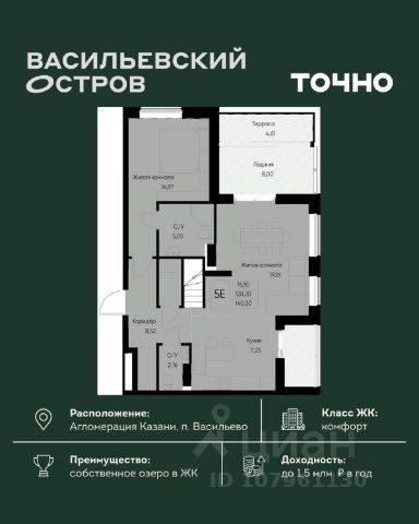 ЖК "Васильевский остров" — масштабный проект ТОЧНО в Казанской агломерации. Просторная территория 88 Га спроектирована для комфортной жизни: озеро с набережной и пляжем, каток, зелёные маршруты. В проекте комплекса — школа на 1 224 места, 2 детских сада на 680 мест, детская и взрослая поликлиники, фитнес-центр с бассейном, термальный комплекс, фермерский рынок, магазины, кафе и рестораны.
