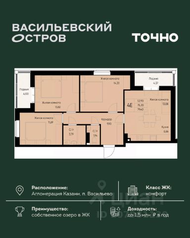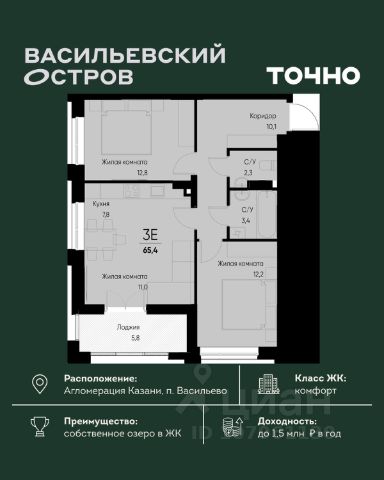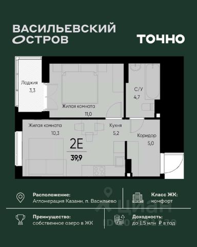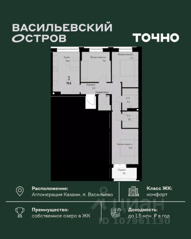 ЖК "Васильевский остров" — масштабный проект ТОЧНО в Казанской агломерации. Просторная территория 88 Га спроектирована для комфортной жизни: озеро с набережной и пляжем, каток, зелёные маршруты. В проекте комплекса — школа на 1 224 места, 2 детских сада на 680 мест, детская и взрослая поликлиники, фитнес-центр с бассейном, термальный комплекс, фермерский рынок, магазины, кафе и рестораны.