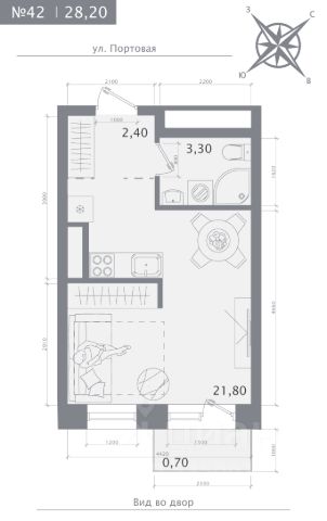 Продаётся студия в строящемся доме (Дом 1), срок сдачи: IV-кв. 2027, общей площадью 28.2 кв.м., на 8 этаже.