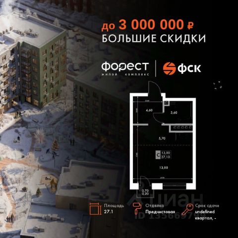 Прямая продажа от застройщика! Корпус 1.1 сдан! Жилой Комплекс комфорт-класса. Продаётся 1-к квартира номер 24 общей площадью 27.1 кв.м. на 5-м этаже 6 этажного здания. Отделка Whitebox. Цена с учётом скидки. Особенности квартиры: - Линейная планировка - максимальная функциональность и удобство. - Евроформат - просторное и удобное жилье с отличной планировкой. - Балкон - открытое пространство для отдыха. Квартира с предчистовой отделкой (White box). Вам не придется заниматься черновыми и трудоёмкими работы, а чистовую отделку и дизайн - сделайте на свой вкус. Информация о комплексе: "Форест" - жилой комплекс комфорт-класса, созданный для тех, кто ищет гармонию с природой, не отказываясь от городского ритма. Расположенный в окружении леса и реки, он воплощает мечту о загородной жизни со всеми удобствами города. Здесь можно проживать самые тёплые моменты с близкими, дышать свежим хвойным воздухом, встречать утро на собственной террасе или проводить вечера с друзьями под открытым небом. Благоустроенная территория, прогулочные дорожки и зоны отдыха создают атмосферу уюта и гармонии. Поблизости - лес и Волга, куда можно выбраться на прогулку в любое время, не дожидаясь выходных. Благодаря вечнозелёным растениям и продуманному озеленению, дворы остаются зелёными круглый год. Транспортная доступность: - 4 мин. пушком до автобусной остановки - 5 мин. на машине до школы Внутренняя инфраструктура: Продуманное пространство для жизни, отдыха и развития. На территории комплекса работает собственный детский сад - современное и безопасное пространство, где дети всегда рядом с родителями. Во дворе установлены игровые комплексы для активных прогулок и развития малышей на свежем воздухе. Жителям доступны кафе и магазины, площадки для прогулок с питомцами, зоны для пикников и барбекю. Для любителей активного образа жизни предусмотрены велодорожки, воркаут-зоны и тропы для хайкинга, а в шаговой доступности находятся планетарий и глэмпинг. Просторный двор без машин и закрытая территория с системой контроля доступа обеспечивают высокий уровень безопасности и приватности. Здесь можно по-настоящему расслабиться и чувствовать себя дома - в окружении природы, комфорта и заботы о каждом дне.