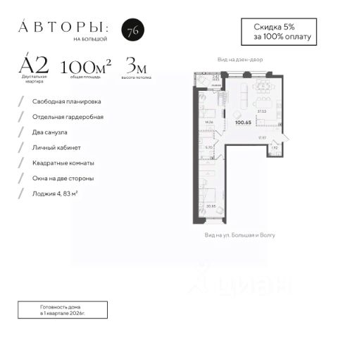 Продается 3-к квартира 27 в клубном доме "Авторы на Большой 62". Квартира с тремя спальнями на 7 этаже площадью 86.91 м², кухней-гостинной площадью 27.09 м², высотой потолков 3 м и двумя санузлами. Окна выходят на три стороны и открывают вид на Волгу, дзен-двор с обильным озеленением и ул. Урицкого. Квартира сдается в свободной планировке, предоставляя полную свободу для ваших предпочтений в дизайне и возможность подстроить пространство под ваши жизненные ценности. Срок сдачи дома — 1-й квартал 2026 года. В клубном доме всего 27 квартир, включая 2 эксклюзивных пентхауса. Проект "Авторы на Большой" входит в ТОП-3 малоквартирных домов в Казани, а также входит в ТОП-3 ЖК по результатам конкурса форума "Казаныш". Квартиры в домах бизнес-класса "Авторы на Большой" расположены всего в 7-ми минутах от исторического центра Казани и в 2-х минутах от новой соборной мечети, начало строительства которой запланировано на 2025 год. Исключительное местоположение проекта позволяет насладиться видом на Волгу, а концепция клубного дома создаёт атмосферу уединения и спокойствия в самом сердце города. В соответствии с современными стандартами бизнес-класса "Авторы" предлагают особые рещения для вашего комфорта: • Закрытая территория с круглосуточным видеонаблюдением. • Подземный паркинг с электрозаправками, келлеры для хранения, умный въезд с распознаванием номеров. • Натуральные коллекционные материалы в лобби для создания атмосферы премиум-класса. Дзен-двор разработан в концепции "городской гостиной", оснащенной барной сткойкой для уютных встреч и коворкингом для комфортной работы на открытом воздухе. Детская зона вдохновлена тематикой реки и её естественной средой. Площадь двора составляет 1100 м², на которых расположатся более 15 видов декоративных растений и цветников. Компания "Авторы" — девелопер на рынке высококлассной недвижимости Казани. Как самостоятельный застройщик компания работает с 2022 года, а в начале 2024 года успешно сдали свой первый проект ЖК "Дом у озера", где 96% квартир были приняты дольщиками с первого раза и без критичных замечаний. Компания входит в ТОП-5 застройщиков РТ по потребительским качествам ЕРЗ. Сейчас компания ведет строительство проектов на ул. Большая, ул. Петербургская, ул. Годовикова и ул. Астрономическая Подробнее - звоните!