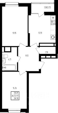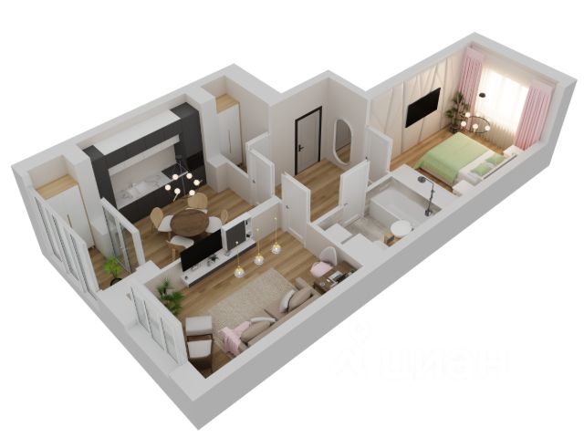 Две отдельные комнаты позволят предусмотреть место для всех домочадцев. В прихожей достаточно места для шкафа-купе, чтобы вам было удобно хранить свои вещи.