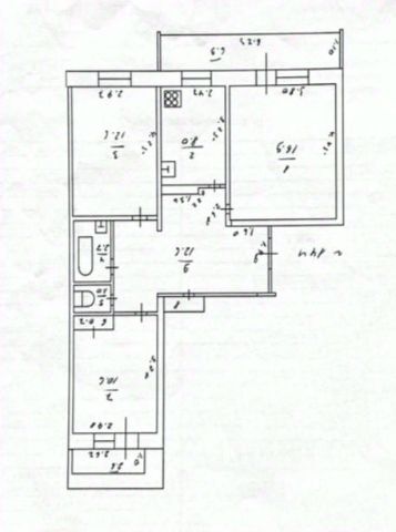 Площадь по выписке 57, 3 квм, с учетом двух лоджий 67, 3 квм.
