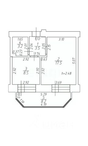1-комнатная квартира, 37,2 м², 14/14 эт. (Общая площадь с учетом летних помещений - 42,20 кв.м.)