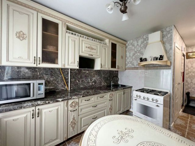 Ремонт выполнен из качественных материалов:с/у раздельный в плитке , в коридоре и кухне на полу плитка , во всех комнатах ламинат , натяжные потолки , пластиковые окна , качественные межкомнатные двери, имеется вместительная кладовка ,из мебели остается кухонный гарнитур и частично мебель по договоренности.