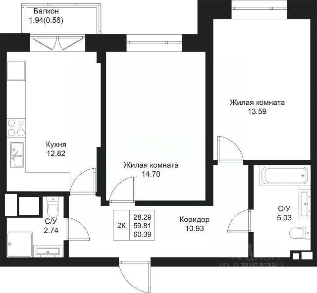 Интеллектуальная планировка: Две большие, изолированные комнаты позволяют комфортно разместиться семье с ребенком. Одна из комнат может стать вашим личным кабинетом, спальней или гостовой — полная свобода для реализации любых идей.