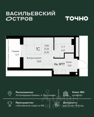 ГОРОД-ПАРК "ЗЕЛЁНАЯ ДОЛИНА" строится в экологичном пригороде Казани - всего в 15 минутах езды от города по обновленному Горьковскому шоссе. Это полноценный город с живописным окружением, свежим воздухом и всей необходимой инфраструктурой: - комплекс комфорт-класса из 17 домов со своим детсадом, торговым центром, фитнес-центром с бассейном, spa, банным комплексом, - огромный парк 3,5 га с озером, барбекю-зоной, спортивными кортами, воркаутом, - частный детский сад "Уникум Land" на 120 мест с центром развития на 100 мест с логоритмикой, нейрогимнастикой на сиббордах, - 2 лицея в шаговой доступности, - фреш-кафе с открытой летней террасой, - "закрытые дворы" с игровыми и спортивными комплексами, видеонаблюдением и ландшафтным дизайном, - большой выбор 1-, 2-, 3-комнатных квартир с одной и двумя спальнями, большими кухнями и гардеробными, - дома строятся из кирпича с толщиной стен в полметра (510 мм), поэтому квартиры очень тёплые, - в квартирах выполнена качественная предчистовая отделка White box или готовый ремонт, - все квартиры оснащены индивидуальным отоплением, поэтому вы сможете сами регулировать температуру в своей квартире и коммунальные платежи, - свое комьюнити с кинопоказами, фитнес-тренировками, фестивалями, - заботливая Управляющая компания на связи с жителями 24/7, - большой уличный паркинг с бесплатными местами. Кстати, сейчас на покупку квартир в ГОРОДЕ-ПАРКЕ "ЗЕЛЁНАЯ ДОЛИНА" действует уникальная программа рассрочки без % на 36 месяце на строящиеся и сданные дома! Вы сможете сразу заехать в свою новую квартиру. Начните новую жизнь в ритме большого города и в балансе с природой!