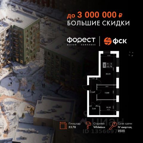 Прямая продажа от застройщика! Корпус 1.1 сдан! Жилой Комплекс комфорт-класса. Продаётся 1-к квартира номер 110 общей площадью 35.3 кв.м. на 4-м этаже 4 этажного здания. Отделка Whitebox. Цена с учётом скидки. Особенности квартиры: - Линейная планировка - максимальная функциональность и удобство. - Гардеробная - удобство для хранения и организации вещей. Квартира с предчистовой отделкой (White box). Вам не придется заниматься черновыми и трудоёмкими работы, а чистовую отделку и дизайн - сделайте на свой вкус. Информация о комплексе: "Форест" - жилой комплекс комфорт-класса, созданный для тех, кто ищет гармонию с природой, не отказываясь от городского ритма. Расположенный в окружении леса и реки, он воплощает мечту о загородной жизни со всеми удобствами города. Здесь можно проживать самые тёплые моменты с близкими, дышать свежим хвойным воздухом, встречать утро на собственной террасе или проводить вечера с друзьями под открытым небом. Благоустроенная территория, прогулочные дорожки и зоны отдыха создают атмосферу уюта и гармонии. Поблизости - лес и Волга, куда можно выбраться на прогулку в любое время, не дожидаясь выходных. Благодаря вечнозелёным растениям и продуманному озеленению, дворы остаются зелёными круглый год. Транспортная доступность: - 4 мин. пушком до автобусной остановки - 5 мин. на машине до школы Внутренняя инфраструктура: Продуманное пространство для жизни, отдыха и развития. На территории комплекса работает собственный детский сад - современное и безопасное пространство, где дети всегда рядом с родителями. Во дворе установлены игровые комплексы для активных прогулок и развития малышей на свежем воздухе. Жителям доступны кафе и магазины, площадки для прогулок с питомцами, зоны для пикников и барбекю. Для любителей активного образа жизни предусмотрены велодорожки, воркаут-зоны и тропы для хайкинга, а в шаговой доступности находятся планетарий и глэмпинг. Просторный двор без машин и закрытая территория с системой контроля доступа обеспечивают высокий уровень безопасности и приватности. Здесь можно по-настоящему расслабиться и чувствовать себя дома - в окружении природы, комфорта и заботы о каждом дне.