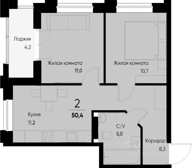 Нижний уровень: Кухня, санузел (туалет + ванная), прихожая и гостиная (третья комната).
