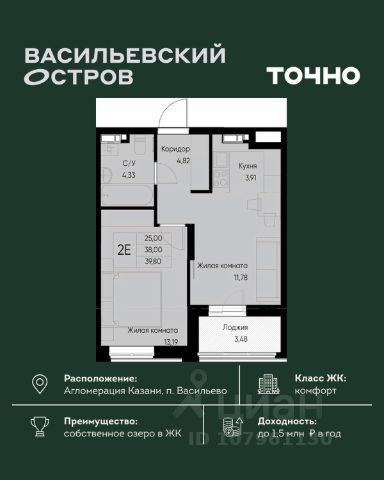 ЖК "Васильевский остров" — масштабный проект ТОЧНО в Казанской агломерации. Просторная территория 88 Га спроектирована для комфортной жизни: озеро с набережной и пляжем, каток, зелёные маршруты. В проекте комплекса — школа на 1 224 места, 2 детских сада на 680 мест, детская и взрослая поликлиники, фитнес-центр с бассейном, термальный комплекс, фермерский рынок, магазины, кафе и рестораны.
