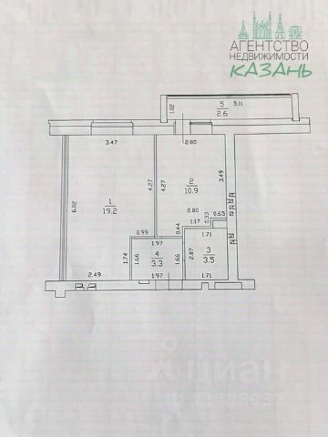 Общая площадь — 36,9 м² + 2,6м² застекленная лоджия