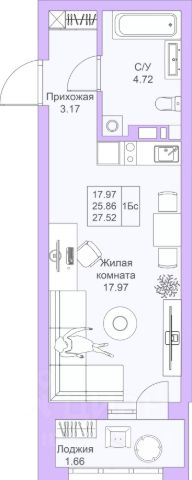Продается 1-комнатная квартира 186 площадью 27,52 кв.м на 20 этаже проекта "Светлая долина" строительной компании "Ак Барс Дом". Купить квартиру можно в ипотеку со ставкой от 3,2% или воспользоваться услугой trade-in. "Светлая долина" — семейный жилой комплекс, находится в Советском районе Казани, за 20 мин. можно доехать до центра города. Рядом — парк с набережной на 10 гектаров и бульвар. На территории 2 школы и 3 детских сада, магазины в шаговой доступности. В плане — новая дорожная развязка по Мамадышскому тракту рядом с ЖК. Благоустройство по авторскому проекту: экологичные дворы с детскими площадками, спортивные зоны и велодорожки, озеленение и яблоневый сад. Чтобы вы чувствовали себя в безопасности, по периметру установлено видеонаблюдение, тамбур оборудован видеодомофоном. Колясочные и лаунж-зоны в подъезде. Входы расположены на уровне земли, что удобно для мам с колясками и пожилых людей. Уютная и продуманная 1-комнатная квартира с просторной кухней-гостиной. В прихожей есть место для шкафа-купе, а кухонная зона спрятана в нише, что позволяет зонировать пространство. Из гостиной открывается выход на лоджию, где можно организовать дополнительное место отдыха. Уход за домом возьмёт на себя УК "Всегда рядом". Благодаря грамотно выстроенной системе, обслуживание квартиры через управляющую компанию "Всегда рядом" будет обходиться дешевле по сравнению с другими. Опытные специалисты помогут вам обеспечить комфортное проживание. Дом там, где мы.