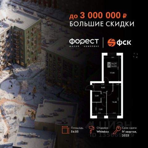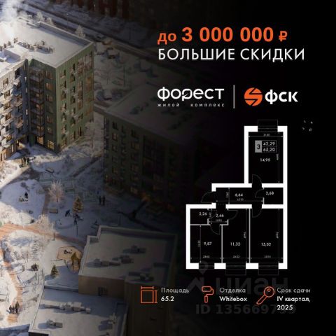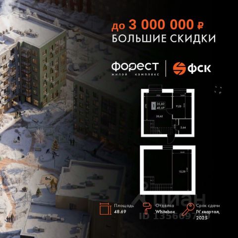 Прямая продажа от застройщика! Корпус 1.1 сдан! Жилой Комплекс комфорт-класса. Продаётся 1-к квартира номер 83 общей площадью 46.9 кв.м. на 4-м этаже 4 этажного здания. Отделка Whitebox. Цена с учётом скидки. Особенности квартиры: - Линейная планировка - максимальная функциональность и удобство. - Увеличенная высота потолков - ощущение простора и легкости. - Второй свет - уникальная атмосфера с открытыми пространствами. - Квартира с антресолью - стильное и необычное решение для вашего дома. Квартира с предчистовой отделкой (White box). Вам не придется заниматься черновыми и трудоёмкими работы, а чистовую отделку и дизайн - сделайте на свой вкус. Информация о комплексе: "Форест" - жилой комплекс комфорт-класса, созданный для тех, кто ищет гармонию с природой, не отказываясь от городского ритма. Расположенный в окружении леса и реки, он воплощает мечту о загородной жизни со всеми удобствами города. Здесь можно проживать самые тёплые моменты с близкими, дышать свежим хвойным воздухом, встречать утро на собственной террасе или проводить вечера с друзьями под открытым небом. Благоустроенная территория, прогулочные дорожки и зоны отдыха создают атмосферу уюта и гармонии. Поблизости - лес и Волга, куда можно выбраться на прогулку в любое время, не дожидаясь выходных. Благодаря вечнозелёным растениям и продуманному озеленению, дворы остаются зелёными круглый год. Транспортная доступность: - 4 мин. пушком до автобусной остановки - 5 мин. на машине до школы Внутренняя инфраструктура: Продуманное пространство для жизни, отдыха и развития. На территории комплекса работает собственный детский сад - современное и безопасное пространство, где дети всегда рядом с родителями. Во дворе установлены игровые комплексы для активных прогулок и развития малышей на свежем воздухе. Жителям доступны кафе и магазины, площадки для прогулок с питомцами, зоны для пикников и барбекю. Для любителей активного образа жизни предусмотрены велодорожки, воркаут-зоны и тропы для хайкинга, а в шаговой доступности находятся планетарий и глэмпинг. Просторный двор без машин и закрытая территория с системой контроля доступа обеспечивают высокий уровень безопасности и приватности. Здесь можно по-настоящему расслабиться и чувствовать себя дома - в окружении природы, комфорта и заботы о каждом дне.