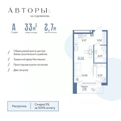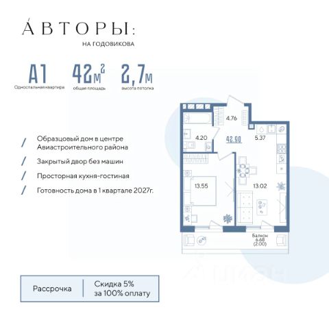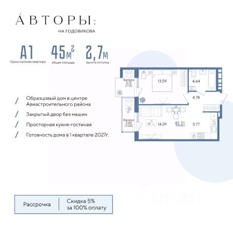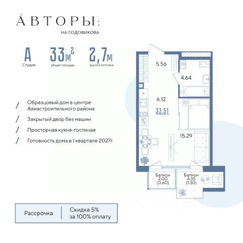 Вы можете приобрести эту квартиру в ипотеку со ставкой от 6% (семейная ипотека). Новоселье уже в этом году! Подробнее - звоните! Продается 2-к квартира 36 в образцовом доме "Авторы на Годовикова" в центре Авиастроительного района. Квартира на 2 этаже площадью 67.67 м², кухней-гостиной и высотой потолков 2.7 м. Квартира сдается в предчистовой отделке со стяжкой полов, предоставляя полную свободу для ваших предпочтений в дизайне. Срок сдачи дома — 1-й квартал 2027 года. Возможно приобретение со скидкой 5% при полной оплате, в рассрочку с первым взносом 30%, а также оформление стандартной ипотеки по интересным условиям. Образцовый дом "Авторы на Годовикова" расположен в тихой зоне, удаленной от активной дороги — на второй линии от улицы Максимова. Соседство с невысокими частными домами открывает превосходный вид из квартиры. Для прогулок на свежем воздухе в шаговой доступности Караваевский парк и парк "Крылья Советов". В соответствии с современными стандартами комфорт-класса "Авторы" предлагают особые решения для вашего комфорта: • Современная архитектура. • Закрытый двор без машин. • Дизайнерские холлы с зонами ожидания и детской комнатой. • Подземный паркинг. • Зона для хвостатых. Двор в концепции траектории полета создает единую линию движения. На территории дома есть многофункциональная зона для йоги и настольных игр, детская зона для комфортных прогулок юных жителей, многофункциональная спортивная площадка со скалолазанием и площадка для выгула собак. Обильное озеленение из 25 видов растений и несколько игровых зон для юных жителей разных возратов: для детей до 3-х лет — песочница, горка и качели; для детей от 4 до 14 лет — большой игровой комплекс, включающий горки, качели, карусели, переговорные трубы и мягкую геопластику, в которой прячутся тоннели. Компания "Авторы" — девелопер на рынке высококлассной недвижимости Казани. Как самостоятельный застройщик компания работает с 2022 года, а в начале 2024 года успешно сдали свой первый проект ЖК "Дом у озера", где 96% квартир были приняты дольщиками с первого раза и без критичных замечаний. Компания входит в ТОП-5 застройщиков РТ по потребительским качествам ЕРЗ. Сейчас компания ведет строительство проектов на ул. Большая, ул. Петербургская, ул. Годовикова и ул. Астрономическая квартира в новостройке с отделкой в районе Авиастроительный в городе Казань.