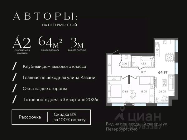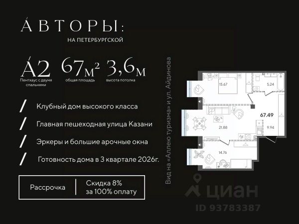 Продается квартира в ЖК Savin Premier с 3 спальнями на 28 этаже 28 этажного дома. Общая площадь: 135.24 кв.м. Высота потолков 3.4 м. Срок сдачи 4 квартал 2025 г. Окна выходят на 2 стороны. Вид на реку. Мастер-спальня. Увеличенная гардеробная. Пентхаус. Застройщик ГК "Садовое кольцо". Безупречный архитектурный ансамбль элегантных резиденций премиум-класса напротив Кремля. Savin Premier — доминанта квартала Savin City, финальный аккорд легендарного произведения, формирующий новый уровень жизни. Каждая деталь дома подчеркивает особую индивидуальность, даже фасадные материалы созданы специально для проекта. Респектабельный и элегантный, Savin Premier воплощает современное прочтение стиля ар-деко. Закрытый от внешнего мира приватный парк возвышен над городом на стилобате и радует глаз всесезонным благоустройством от международного ландшафтного бюро WOWHAUS — создателей многих проектов в парке Горького в Москве и в парке "Черное озеро" в Казани. Уникальные форматы квартир: • Квартиры с террасами • Двухуровневые квартиры • Квартиры со вторым cветом • Квартиры с зимним садом • Квартиры с гардеробными комнатами и мастерспальней • Видовые квартиры • Квартиры с окнами на разные cтороны света • Квартиры с окнами "перевернутые арки" Планировочные решения, созданные по выверенным лекалам, позволяют соблюсти оптимальное соотношение жилых и вспомогательных помещений: • Геометрически правильные формы помещений • Отсутствие несущих стен внутри квартиры • Отсутствие лишних углов, выступов, длинных коридоров • Размеры помещений создавались с учетом эргономики и габаритов • мебели • В каждой квартире предусмотрены ниши для шкафов или гардеробные Технологии премиального комфорта. Все для спокойствия, здоровья и долголетия: • Функция обеззараживания воздуха в гранд-лобби комплекса • Трехуровневая система безопасности: охраняемая территория с видеонаблюдением, распознаванием лиц и номеров автомобилей, NFC меток смартфонов • Двойная система очистки воды до уровня питьевой Насыщенная инфраструктура дома только для резидентов: • Консьерж-сервис 24/7 • Персональное мобильное приложение с функцией room-сервис для резидентов • Тренажерный зал для резидентов комплекса • Valet-паркинг • Дворецкий • Отдельный лифт для обслуживающего персонала Клубная зона с трансформируемым пространством: • библиотека с камином • VIP-переговорная • бьюти-коворкинг Квартира в новостройке премиум-класса в республике Татарстан.