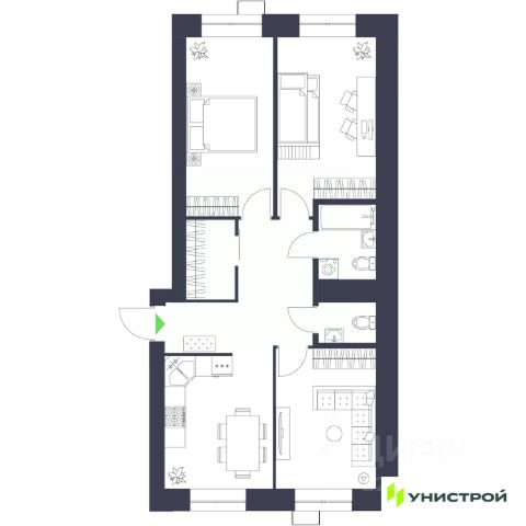 "Царёво Сити" новый проект компании "Унистрой" в Татарстане, сочетающий в себе все преимущества жизни в комфортабельных городских квартирах, при этом в загородном комплексе, рядом с природой. Жилой комплекс расположен в живописном районе республики в 10 минутах езды от Казани. На территории комплекса "Царёво Сити" собственная школа и 2 детских сада. В шаговой доступности, в соседнем "Царёво Village" ритейл-парк Udacha, лицей с агробиологическим уклоном, 3 детских сада, лесопарковая зона с барбекю и озером. Бульвар, приватные дворы, комфортная переменная этажность, стильные холлы. В проекте представлено большое разнообразие планировочных решений: студии, европланировки и полноценные 1-, 2-, 3-комнатные. Для ценителей частных пространств мы подготовили миксы загородных домов и городских форматов: квартиры с личным входом с улицы, коллекционные варианты с террасами, а также мастер-спальни с ванными, гардеробными и эксклюзивные варианты на последних этажах с видом на зелёные окрестности района. "Царёво Сити" гармония архитектуры и природы, частной жизни и городского комфорта. Самодостаточный район "Царёво Сити" расположен в развитом районе Республики Татарстан, в 10 минутах езды от Казани. На территории соседнего ЖК "Царёво Village" расположены 3 детских сада, 2 из которых муниципальные, и многопрофильный лицей с агробиологическим уклоном. В шаговой доступности ритейл парк Udacha с магазинами продуктов, товаров для дома, аптеками. Там же есть коворкинг для работы, переговоров, встреч с партнёрами и проведения семейных праздников. Для прогулок лесопарковая зона "Царёво Village" с площадкой для барбекю, озеро, конный клуб. Добраться до города можно по новой 4-полосной автодороге. На въезде в жилой комплекс есть удобная транспортная развязка. Гармония архитектуры и природы Фасады зданий будут выполнены в современном стиле с чередованием материалов и фактур. Облицовка в контрастных природных тонах позволит гармонично интегрировать "Царёво Сити" в окружающий архитектурный контекст. Акценты из дерева с общим светло-серым фоном застройки создают современное экстерьерное решение. Панорамное остекление лоджий, балконов, увеличенные оконные проемы гармонично дополняют архитектуру проекта и наполняют комнаты естественным светом. Естественные формы и натуральные материалы В "Царёво Сити" выдержан баланс города и природы. Из наших последних проектов мы позаимствовали все лучшие современные решения: приватные дворы с системой контроля доступа и видеонаблюдением по периметру, разнообразие общественных пространств для отдыха, занятий спортом и работы на свежем воздухе, велосипедные дорожки и зоны воркаута. В контакте с природой мы создали для вас зоны отдыха, игровые пространства из натуральных материалов, максимально сохранив их естественные формы и фактуру. Бульвар для отдыха и работы В центре комплекса будет общественное пространство, где жители смогут встречаться, бегать по утрам, работать. Бульвар будет разделен на несколько тематических локаций: Квартира в новостройке в Пестречинском районе республики Татарстан.
