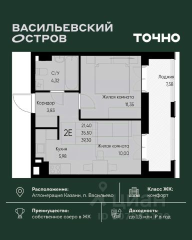 ЖК "Васильевский остров" — масштабный проект ТОЧНО в Казанской агломерации. Просторная территория 88 Га спроектирована для комфортной жизни: озеро с набережной и пляжем, каток, зелёные маршруты. В проекте комплекса — школа на 1 224 места, 2 детских сада на 680 мест, детская и взрослая поликлиники, фитнес-центр с бассейном, термальный комплекс, фермерский рынок, магазины, кафе и рестораны.