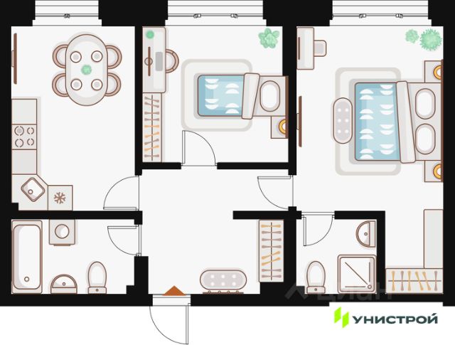Аквамарин "Аквамарин" проект компании "Унистрой", расположенный в тихом месте у озера, всего в 30 метрах от воды. Парк, набережная и озеро для рыбалки создают атмосферу загородного уикенда в 5 минутах от дома. Комплексная жилая застройка включает 3 дома с закрытыми дворами, обеспечивая жителям уют, комфорт и безопасность. Городская среда Квартал комфорт-класса расположен рядом с озером Средний Кабан и Монастырской протокой. До центра города 10 минут на авто. Фасады домов выполнены в сдержанных европейских цветах, дополнены стильной подсветкой. Для удобства предусмотрено два заезда: через улицу Варганова и Фермское шоссе. Рядом расположены ТЦ "KazanMall", "Кольцо", набережная озера Кабан, Казанский Кремль. Природа В парке вы сможете отдохнуть от городской суеты и побыть наедине с природой, заняться спортом и провести выходные с семьей. В "Аквамарине" возможны любые сценарии отдыха: дружеские вечера, пикники, рыбалка, романтические прогулки, йога, игры с детьми. На набережной вас будут ждать велодорожки и разнообразные общественные пространства. Комфорт В комплексе 3 дома с закрытыми дворами без машин и доступа посторонних. Дворы соединены живописными бульварами. Прогулочные зоны ведут в парк и к озеру. Жители оценят протяженность вело- и беговых маршрутов, а также близость магазинов, аптек, кафе, салонов красоты и ресторанов. Дворы-парки Места для отдыха организованы и внутри дворов. Игровые локации для детей, воркаут-зоны, спортплощадки для футбола, волейбола, баскетбола, позволят найти развлечения по интересам. Покрытия детских площадок и прогулочных зон выполнены из природных материалов. Внимание к деталям Территория комплекса, дворы и первые этажи подъездов, оснащены видеонаблюдением. Вход в подъезд на уровне земли. Домофоны установлены в теплых тамбурах. В домах скоростные бесшумные лифты. На первых этажах предусмотрены колясочные комнаты с велопарковками и местами для хранения. Планировки В "Аквамарине" представлены различные планировки: студии, 1-, 2-, 3-комнатные квартиры, в том числе евроформаты. Большой выбор квартир под любые потребности: с кухнями-гостиными, собственной кладовой для кухни, угловыми или панорамными окнами, видами на озеро и Гребной канал. Также предлагается уникальный формат урбан-вилл с личным входом, варианты с террасами на первых и последних этажах, квартиры с теплыми лоджиями. Дома будут сдаваться в качественной предчистовой отделке. Бережливое потребление Показания приборов учёта воды, электричества, тепла будут автоматически передаваться в Сервисную компанию. В квартиры будет поступать очищенная питьевая вода. Школа, детские сады Школа на 1224 места в шаговой доступности. Детский сад на 220 мест прямо на территории ЖК. Все социальные объекты в 10 минутах ходьбы. Детские учреждения будут выполнены в единой стилистике и концепции комплекса и станут отличной образовательной базой для детей. Паркинг В комплексе будут различные варианты паркинга: многоуровневый паркинг на 773 места, гостевые места на территории Рос