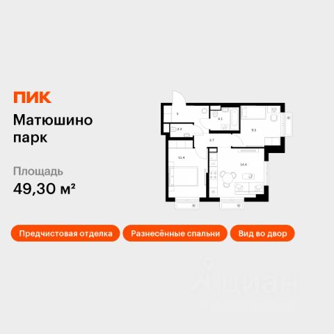 Продается 2-комнатная квартира 3 площадью 46,8 кв.м на 2 этаже в строящемся ПК 1-3 доме проекта "Дома у сада" компании "Aк Барс Дом".