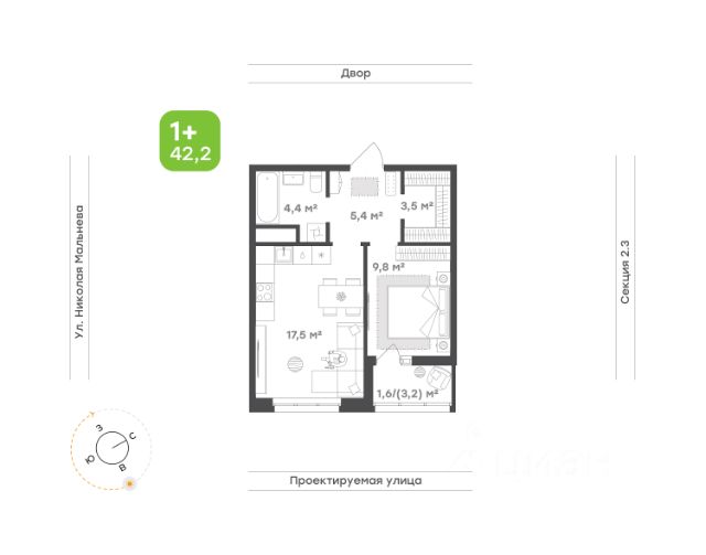 Светлая, уютная квартира для небольшой семьи Кухня-гостиная с выходом на камерную лоджию Спальня с видом в тихий двор Санузел оптимальной площади Постирочная для комфортного быта Функциональная прихожая с нишей под шкаф-купе Окна на солнечную сторону Высота потолков 2,7м Улучшенная предчистовая отделка