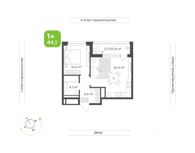 Кухня-гостиная с выходом на уютную лоджию Функциональная спальня Уютная детская правильной формы Прихожая с выделенным местом для шкафа Раздельный санузел для дополнительного комфорта всей семьи Высота потолков 2,7м Улучшенная предчистовая отделка
