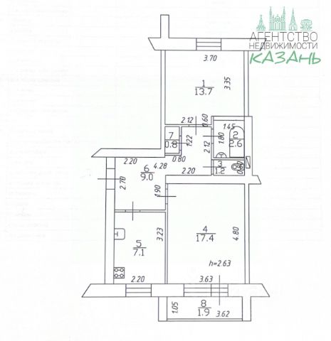 2-комнатная квартира в кирпичном доме | газ | потолки 2,63 м Продаётся уютная 2-комнатная квартира в кирпичном доме по адресу: г. Казань, ул. Окольная, д. 30. Тёплый дом, газ, комфортная планировка и приятная атмосфера для жизни. Квартира светлая, распашонка, окна выходят на разные стороны дома. Высокие потолки — 2,63 м, ощущение простора и воздуха. На полу линолеум, стены — обои, аккуратное жилое состояние. В квартире в данный момент выполняется косметический ремонт. Функциональная планировка, изолированные комнаты. Есть лоджия, кладовое помещение. Часть мебели остаётся, по вашему желанию можем всё вынести. потолки 2,63 м общая площадь — 51,8 м² жилая — 31,1 м² подсобные помещения — 20,7 м² лоджия — 1,9 м² Дом после капитального ремонта. Зелёный двор, современная детская площадка, хорошее вечернее освещение. Спокойные, доброжелательные соседи. Отличная локация и транспортная доступность. Рядом улицы Восстания и Кулахметова. В шаговой доступности магазины, аптеки, пункты выдачи, детская стоматология. Рядом детский сад 105, Лицей-интернат 2, Софийская церковь и мечеть Рамазан. У дома остановка общественного транспорта, удобный выезд в разные районы города. Квартира без долгов и обременений. 2 взрослых собственника. Все документы готовы к сделке. Показ в удобное для вас время. Звоните или пишите — расскажу подробнее. АН "Казань" — надёжные сделки с 2010 года. Одобрение ипотеки Полное юридическое сопровождение Проверка документов Добавьте объявление в избранное, чтобы не потерять 1171024