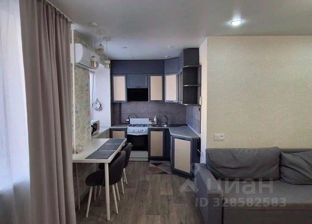 Общая площадь квартиры 43,8кв.м., первый этаж, разнарядка, кухня совмещена с залом.