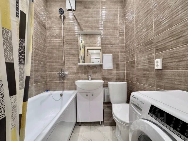 совмещенный сан узел 3,5 кв м полностью покрыт керамической плиткой .
