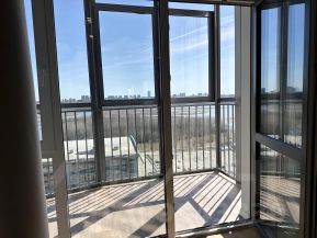 Имеется огромная и просторная застекленная лоджия , на данную лоджию имеются три выхода: из зала, кухни и одной из спальных комнат.
