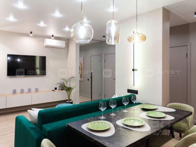 Квартира полностью готова к заселению. Свежий ремонт, идеальная чистота. Всё обставлено и оборудовано - мебель и техника входят в стоимость.