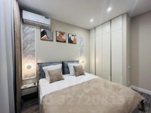 - мастер-спальня 17,51 кв.м. с кондиционером, оснащенной гардеробной, собственным санузлом с ванной и окном, двуспальной кроватью, шторами с электроприводом, а так же выходом на лоджию с видом во двор и мост Миллениум;